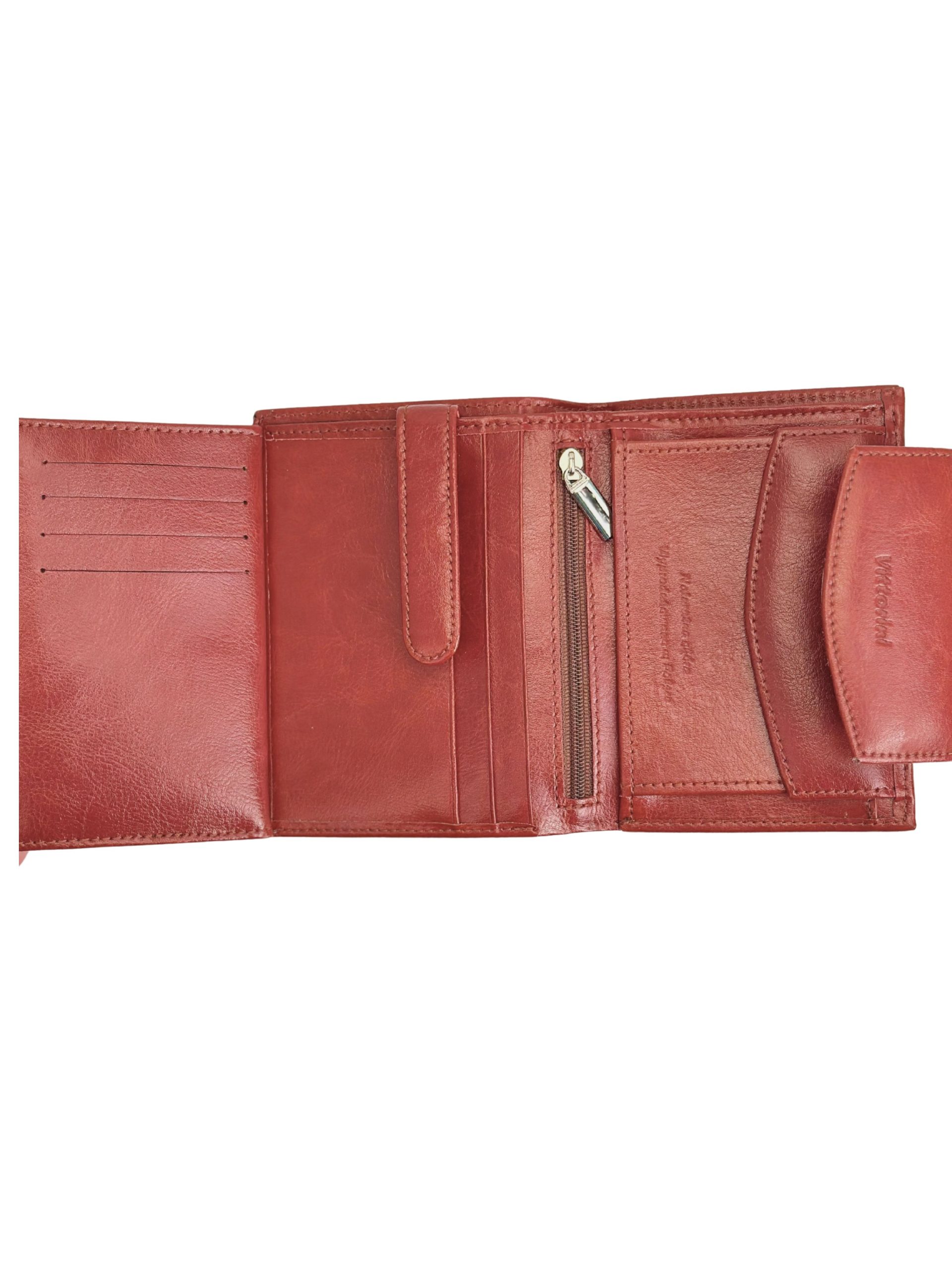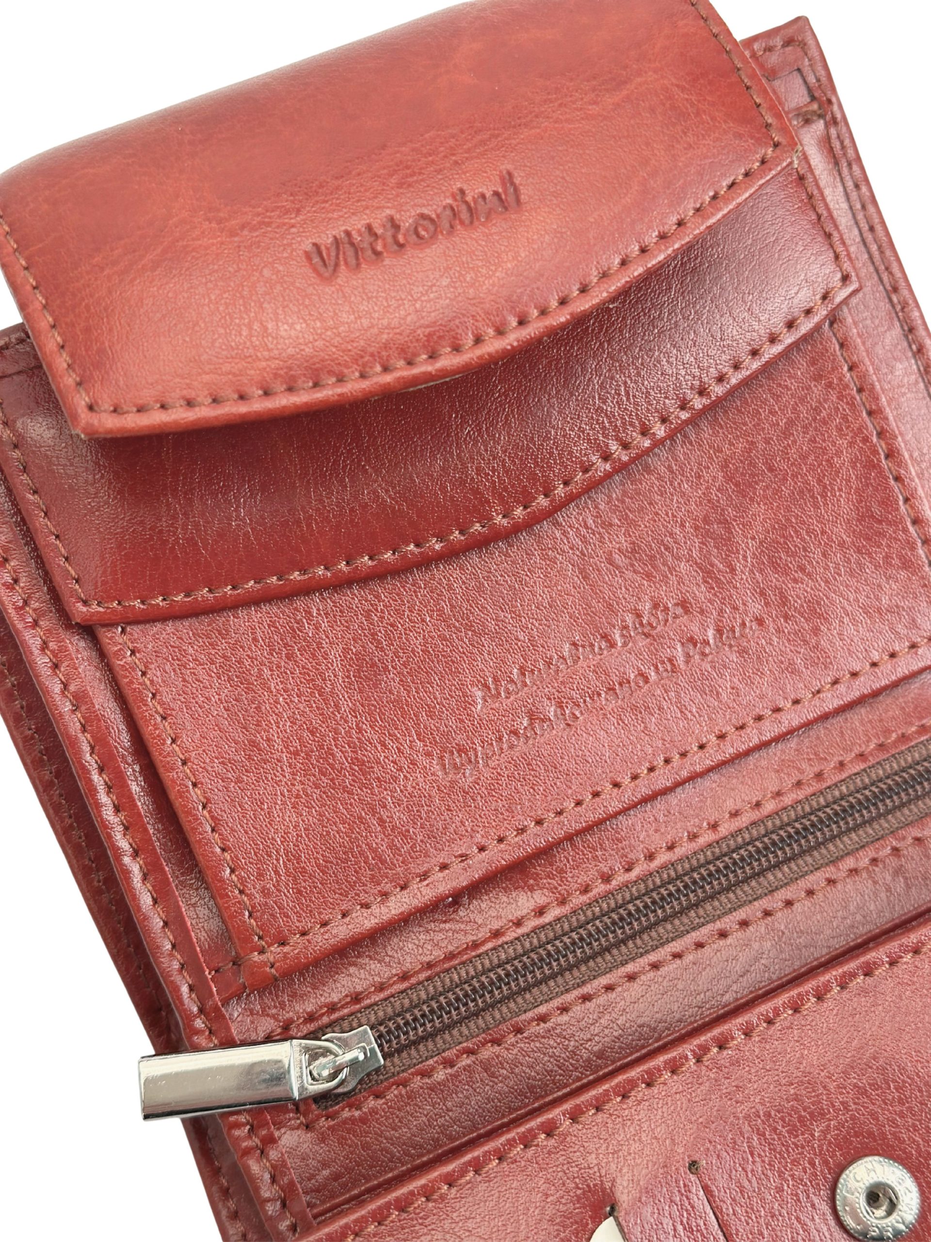 Skórzany portfel damski w niespotykanym kolorze davi, pochodzący z kolekcji Vittorini, która charakteryzuje się klasycznym designem i najwyższą jakością wykonania. Model został wykonany z naturalnej skóry, co czyni go miękkim i przyjemnym w dotyku. Jest on trwały, dzięki zastosowaniu solidnych i mocnych przeszyć.