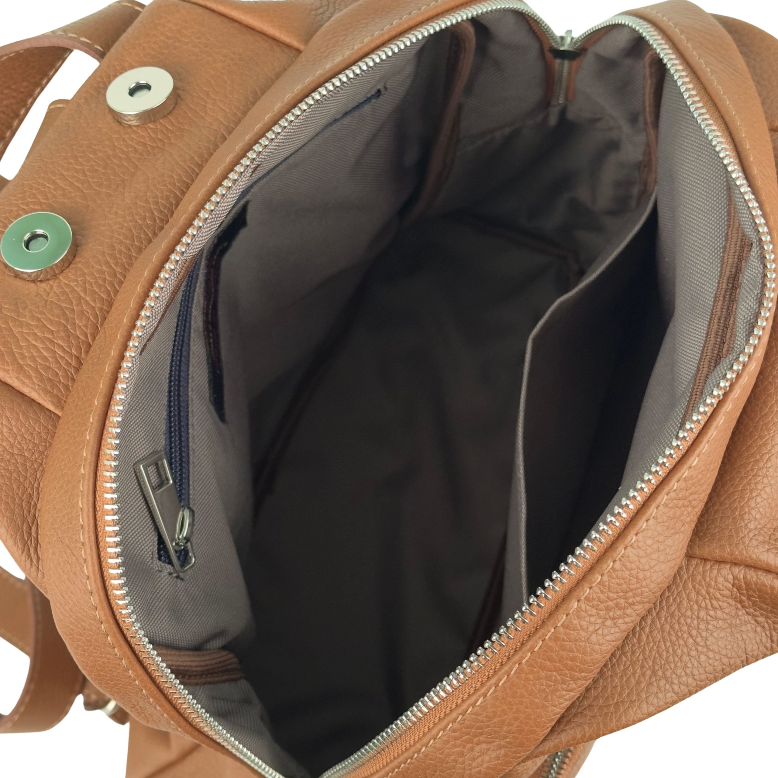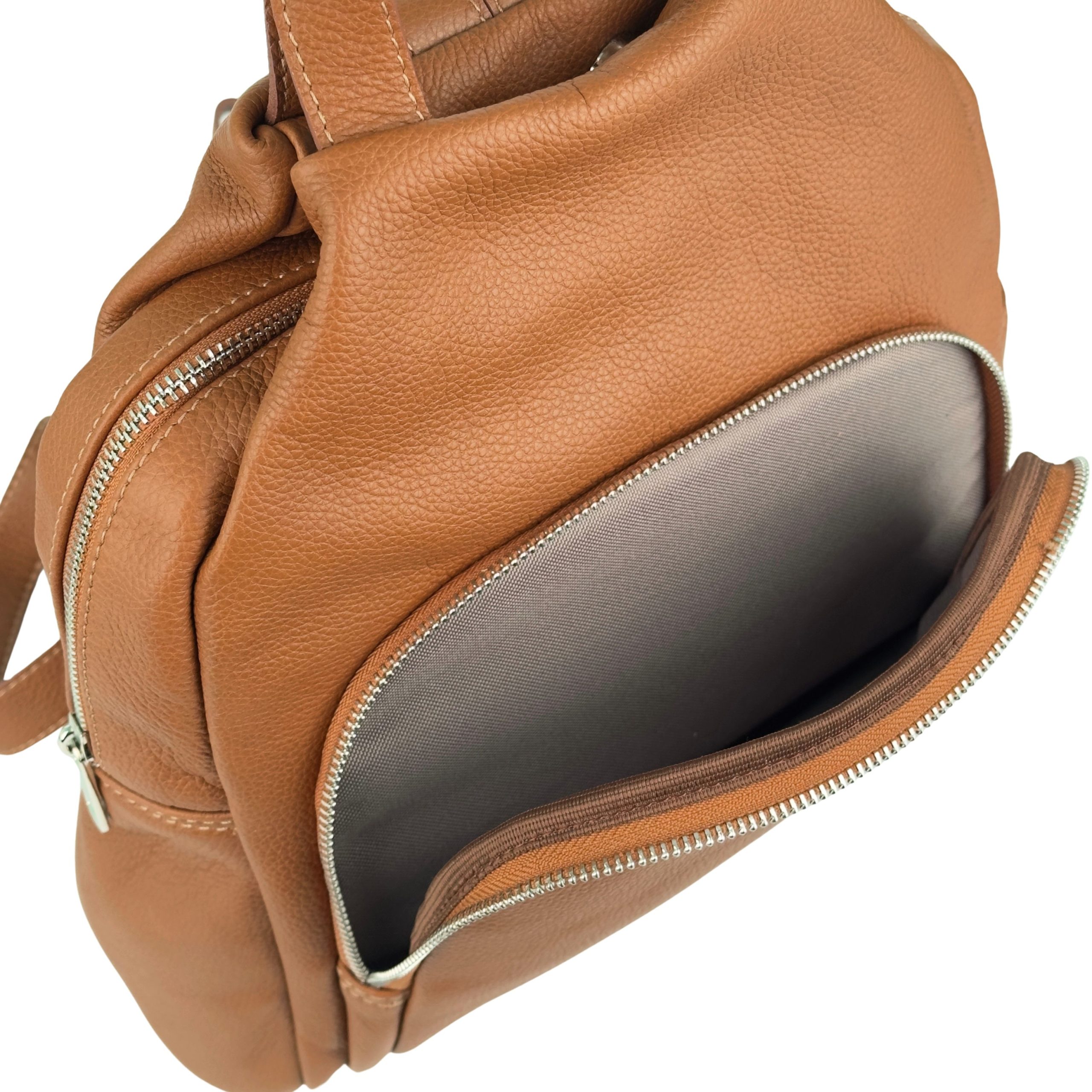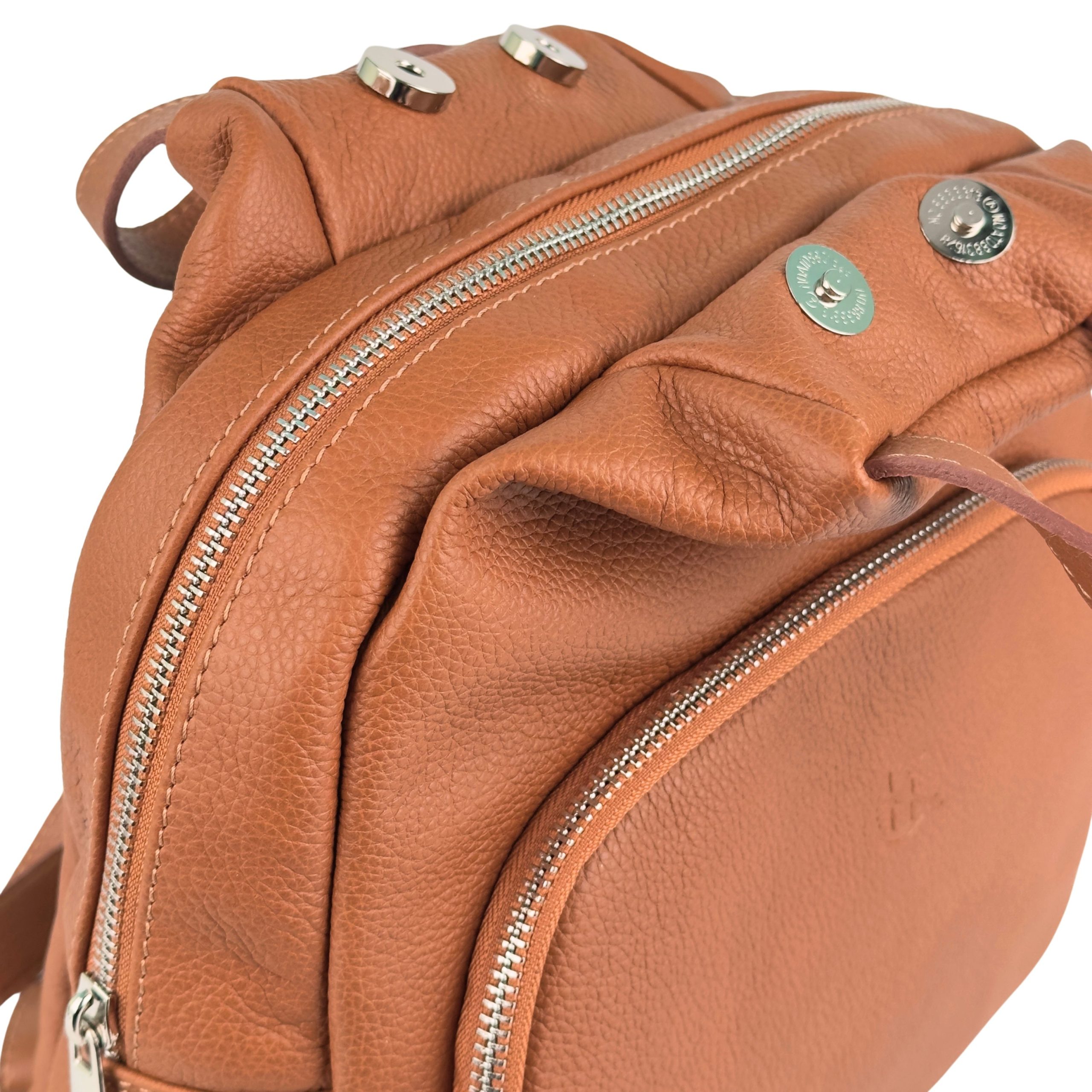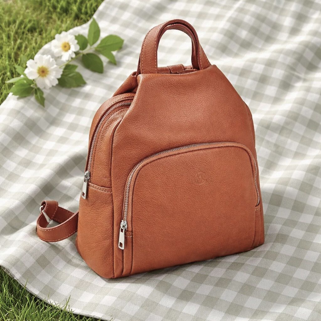 Postaw na luksusowy minimalizm i funkcjonalność. Ten elegancki plecak wykonany z najwyższej jakości naturalnej skóry o strukturze groszkowej to propozycja dla kobiet, które szukają stylowej alternatywy dla klasycznej torebki. Głęboki, ciepły kolor koniakowy sprawia, że plecak doskonale komponuje się zarówno z wełnianym płaszczem, jak i letnią sukienką.