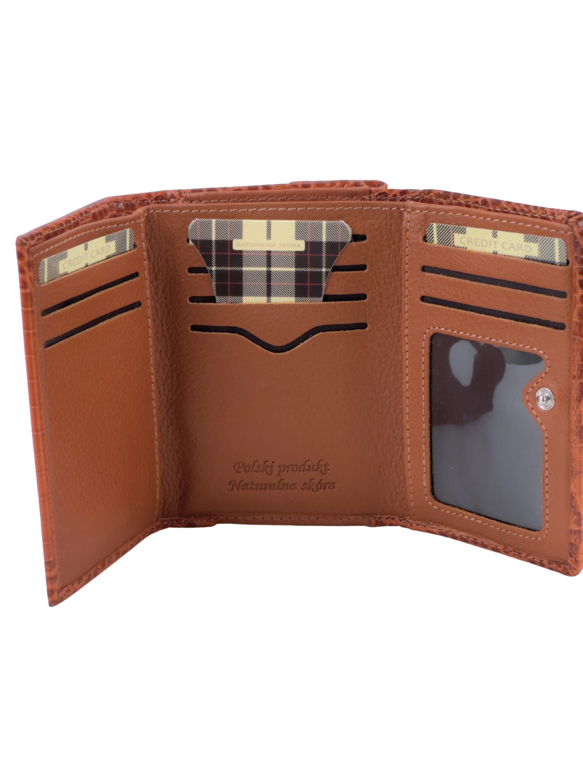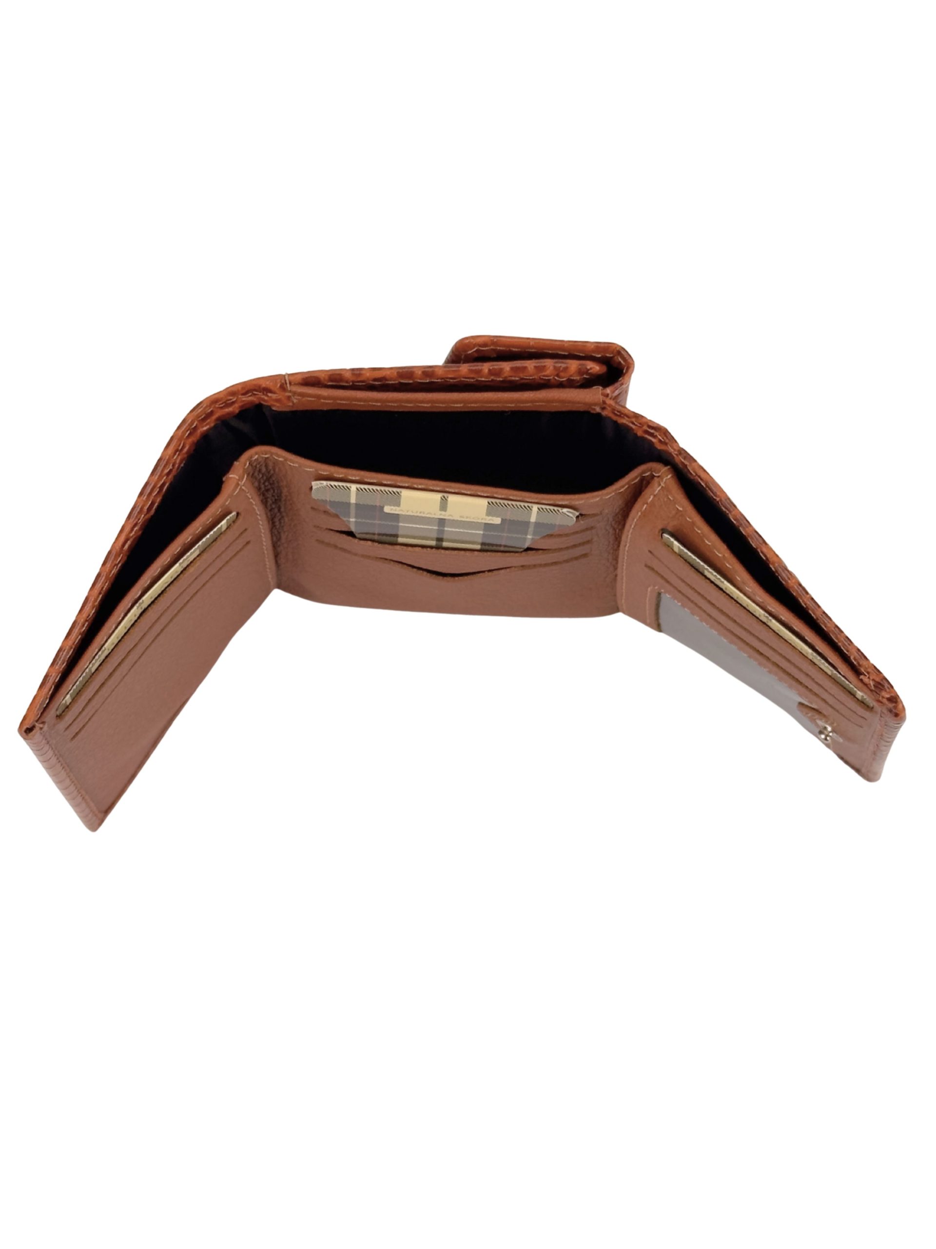 Podwójne Zabezpieczenie: * Całość portfela zapinana jest na solidną, estetyczną napę, co zapobiega przypadkowemu otwarciu.