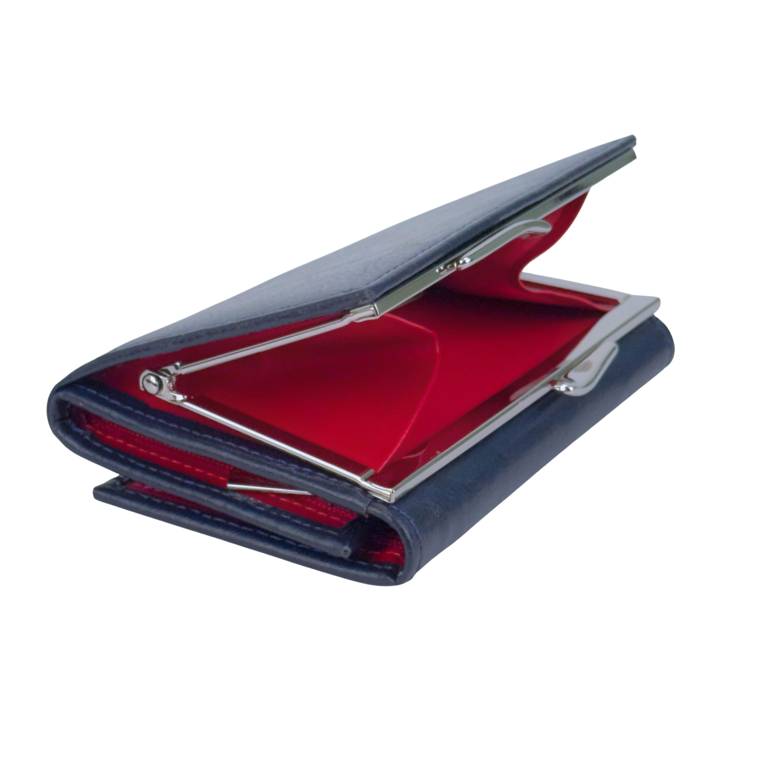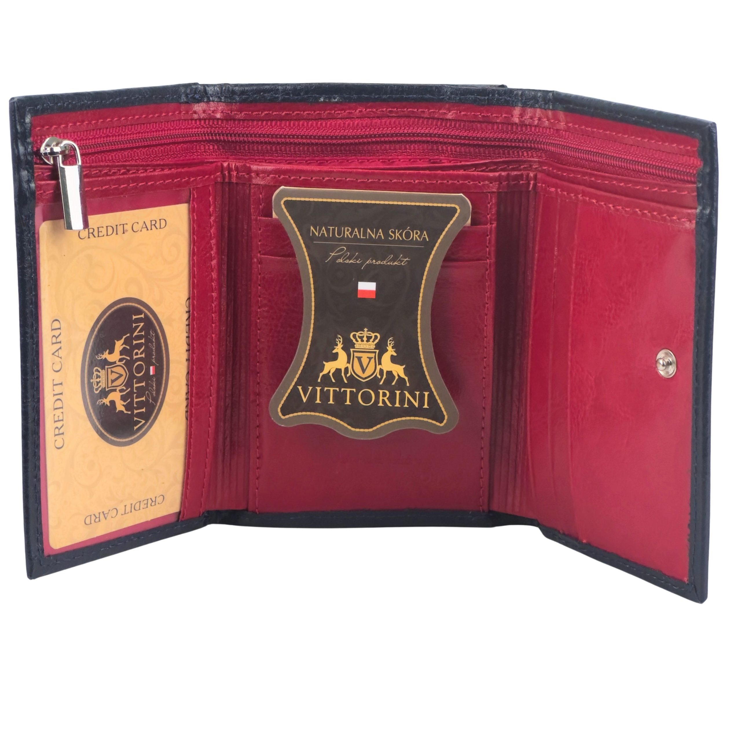 Odkryj połączenie, które jest definicją wyrafinowanego stylu: głęboki, dostojny granat na zewnątrz i energetyczna, zmysłowa czerwień wewnątrz. Ten kompaktowy portfel to propozycja dla kobiet ceniących dyskretną elegancję, która skrywa wyrazisty charakter. Idealny balans między klasyką, funkcjonalnością a odrobiną luksusowego szaleństwa.