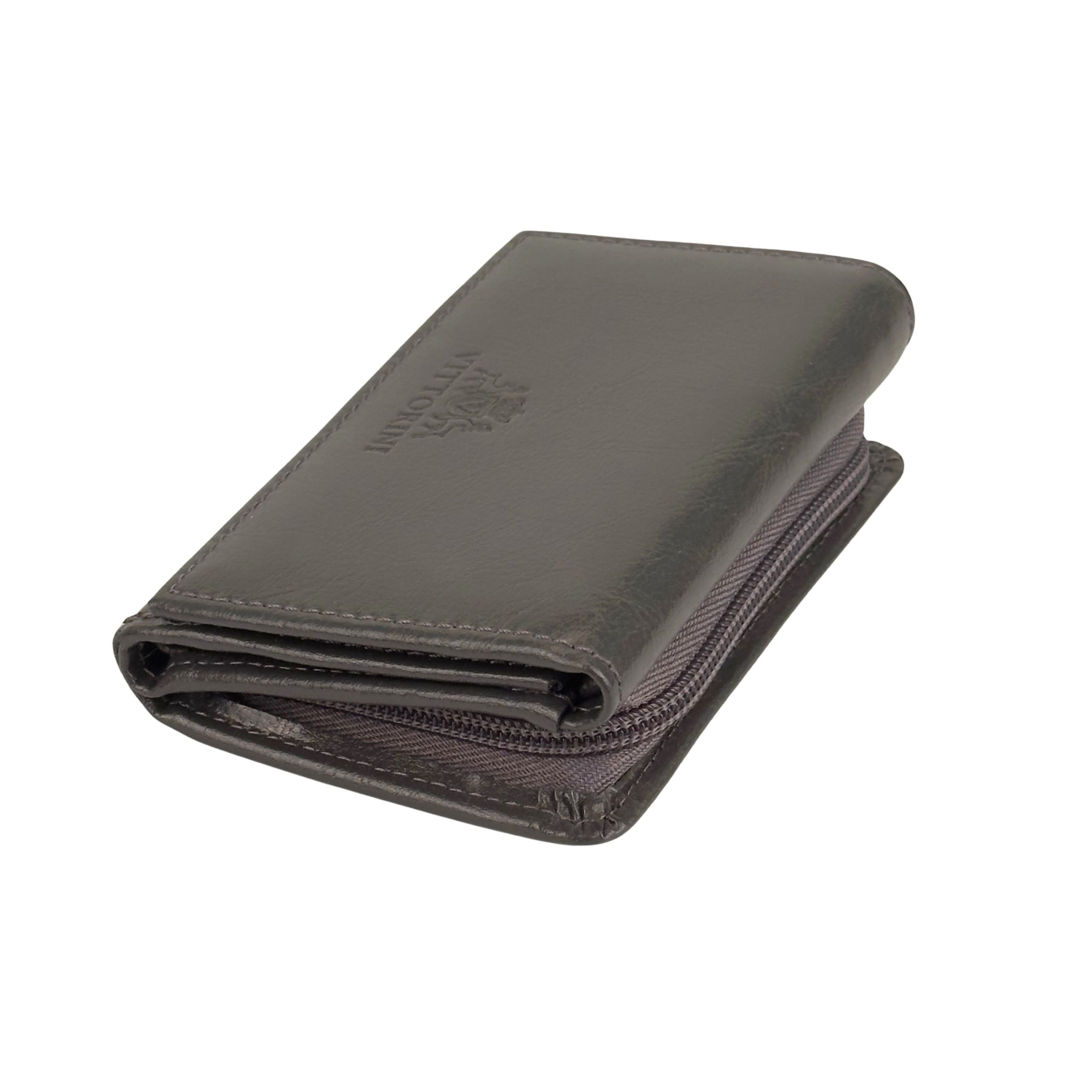 Ukryty schowek na suwak: Za sekcją na banknoty, na całej długości portfela, ukryto dodatkową kieszeń na ekspres. To bezpieczne miejsce na ważne paragony, bilety lub dodatkową gotówkę.