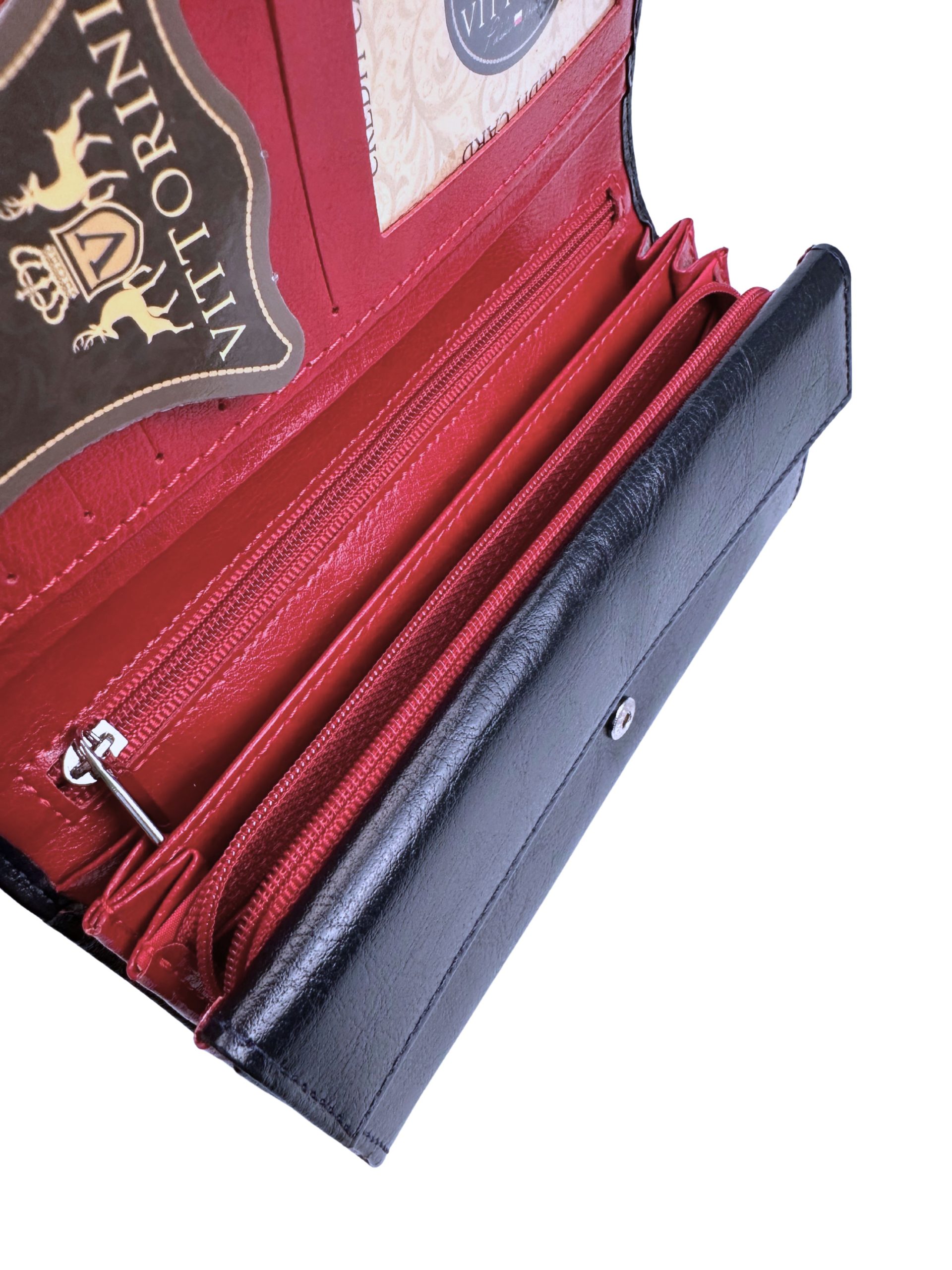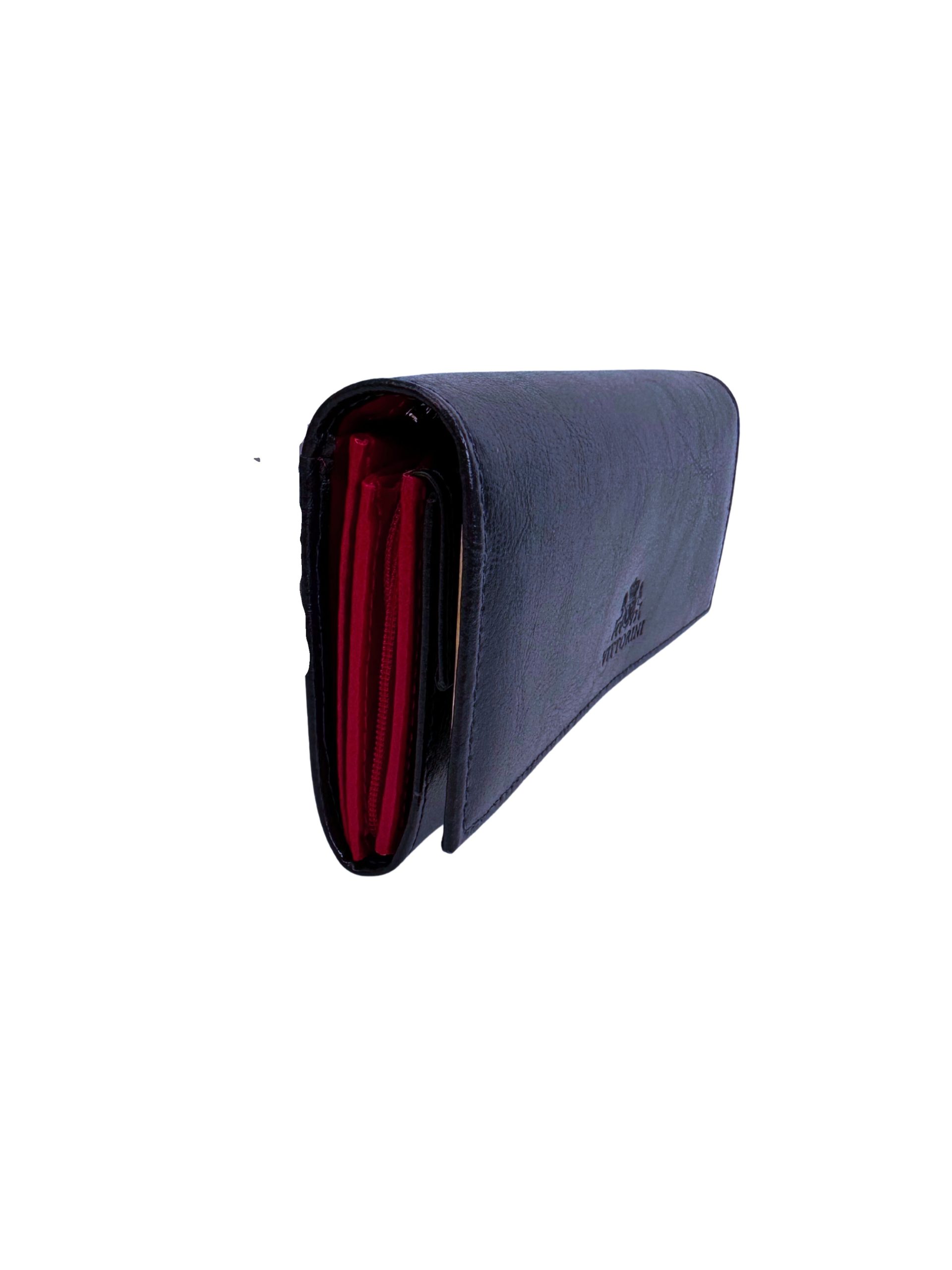 Portfel Vittorini to doskonałe połączenie elegancji, funkcjonalności i starannego wykonania. Klasyczna kolorystyka, głęboki granat zestawiony z czerwonym wnętrzem sprawia, że model prezentuje się wyjątkowo stylowo i ponadczasowo.