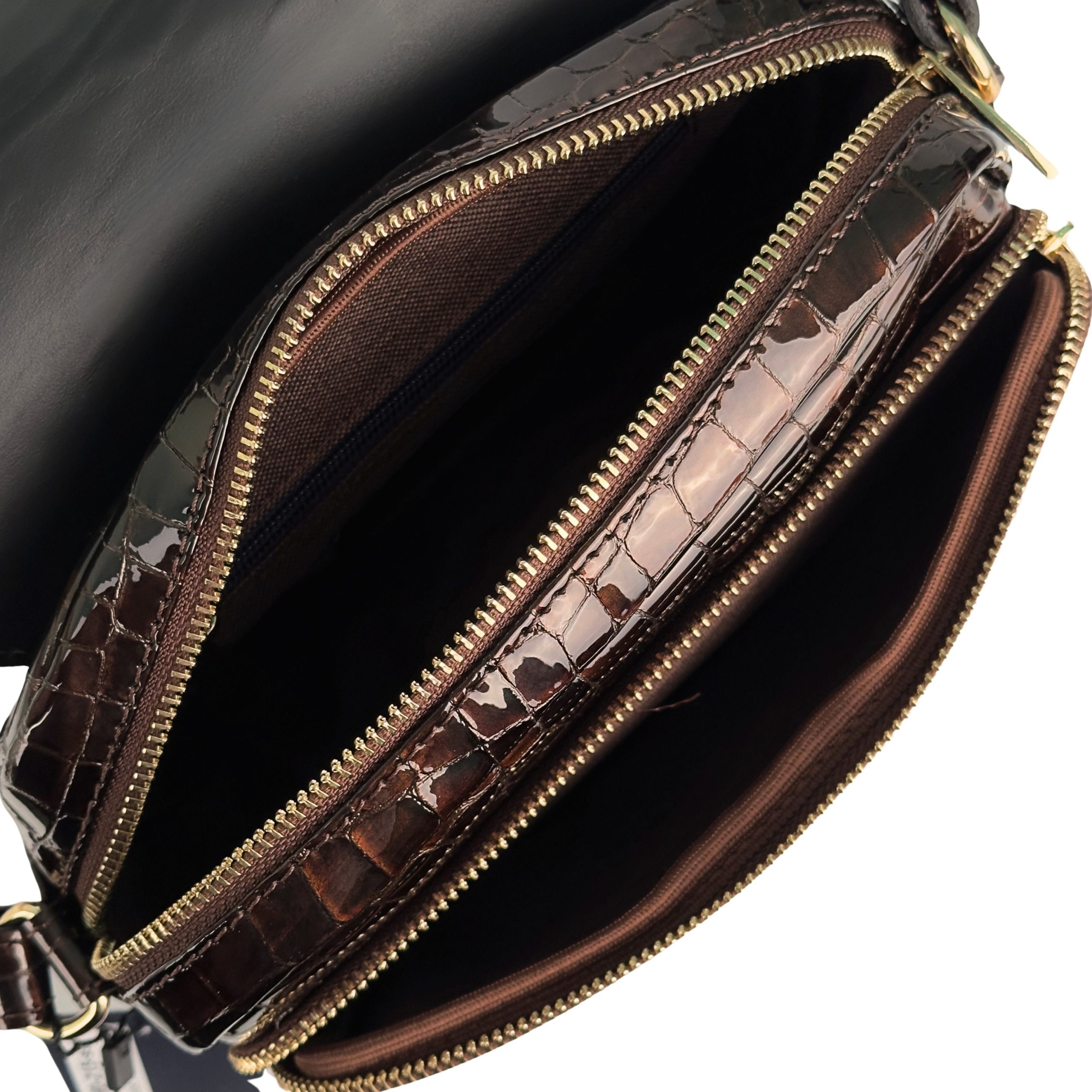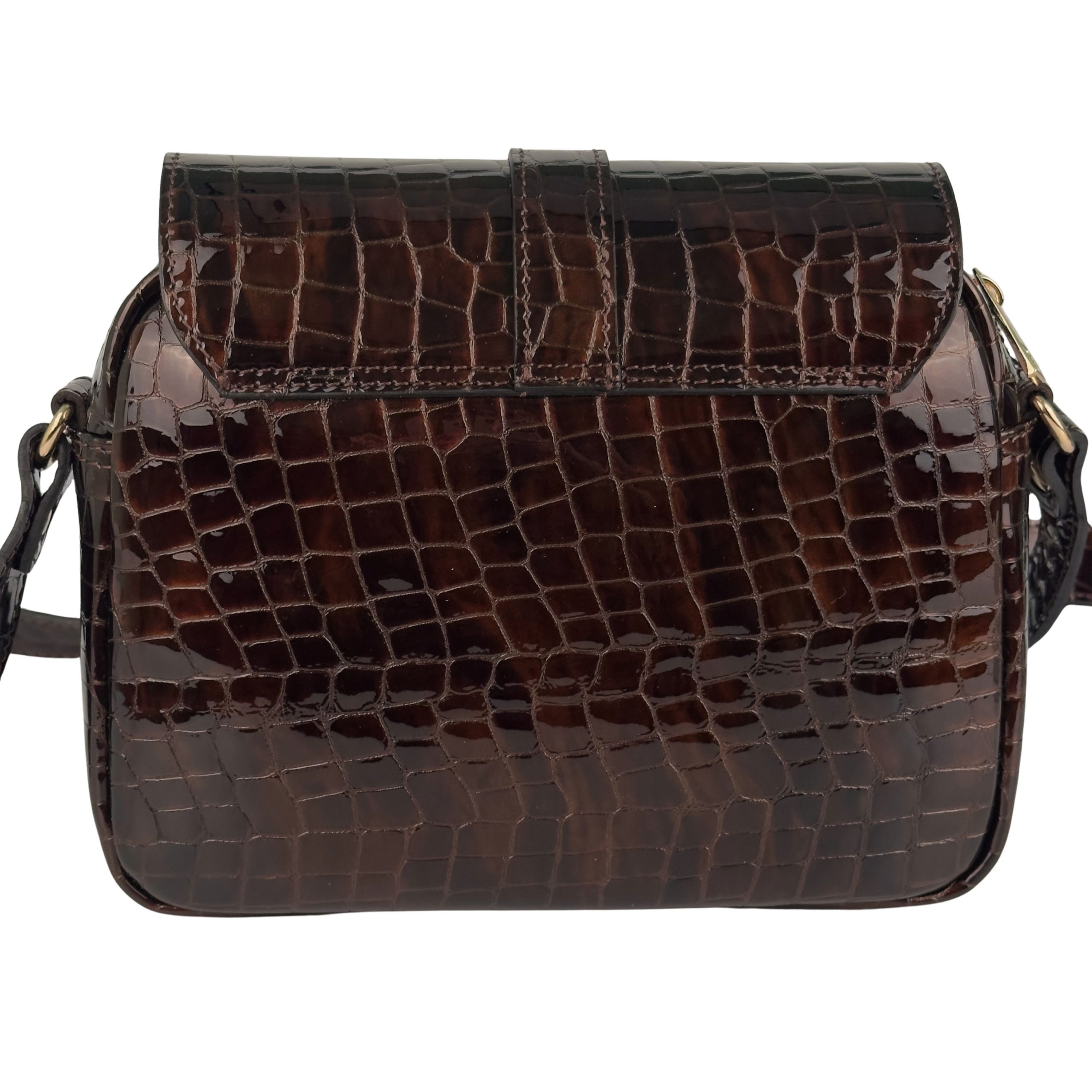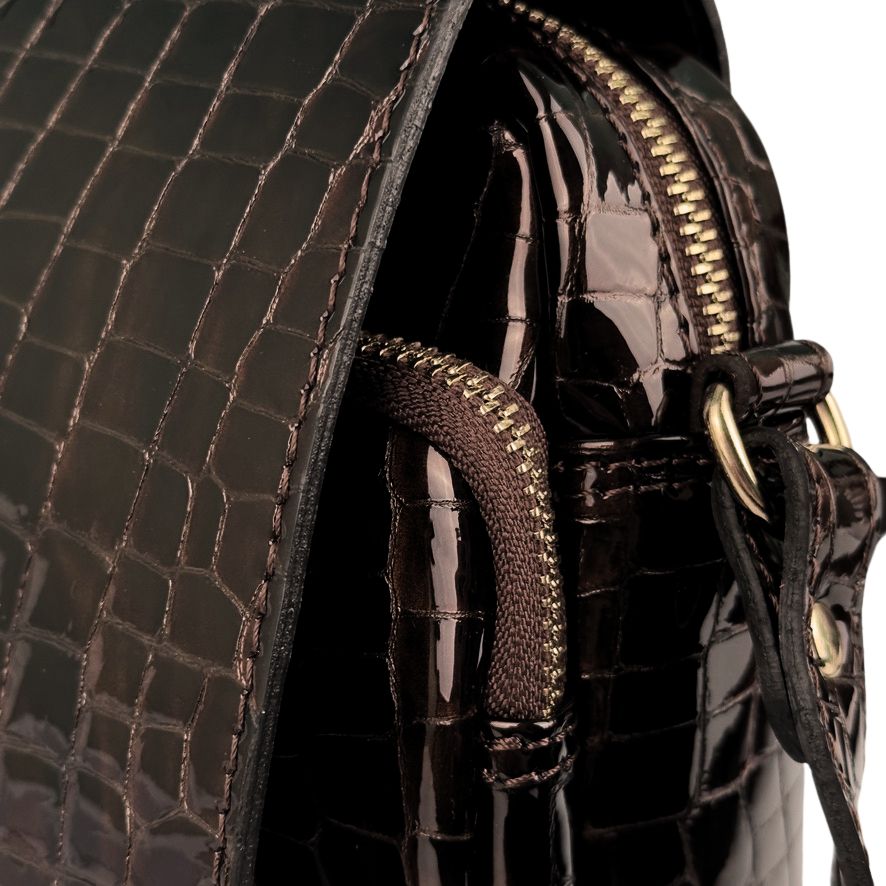 Elegancka torebka damska – błyszczący brązowy krokodyl