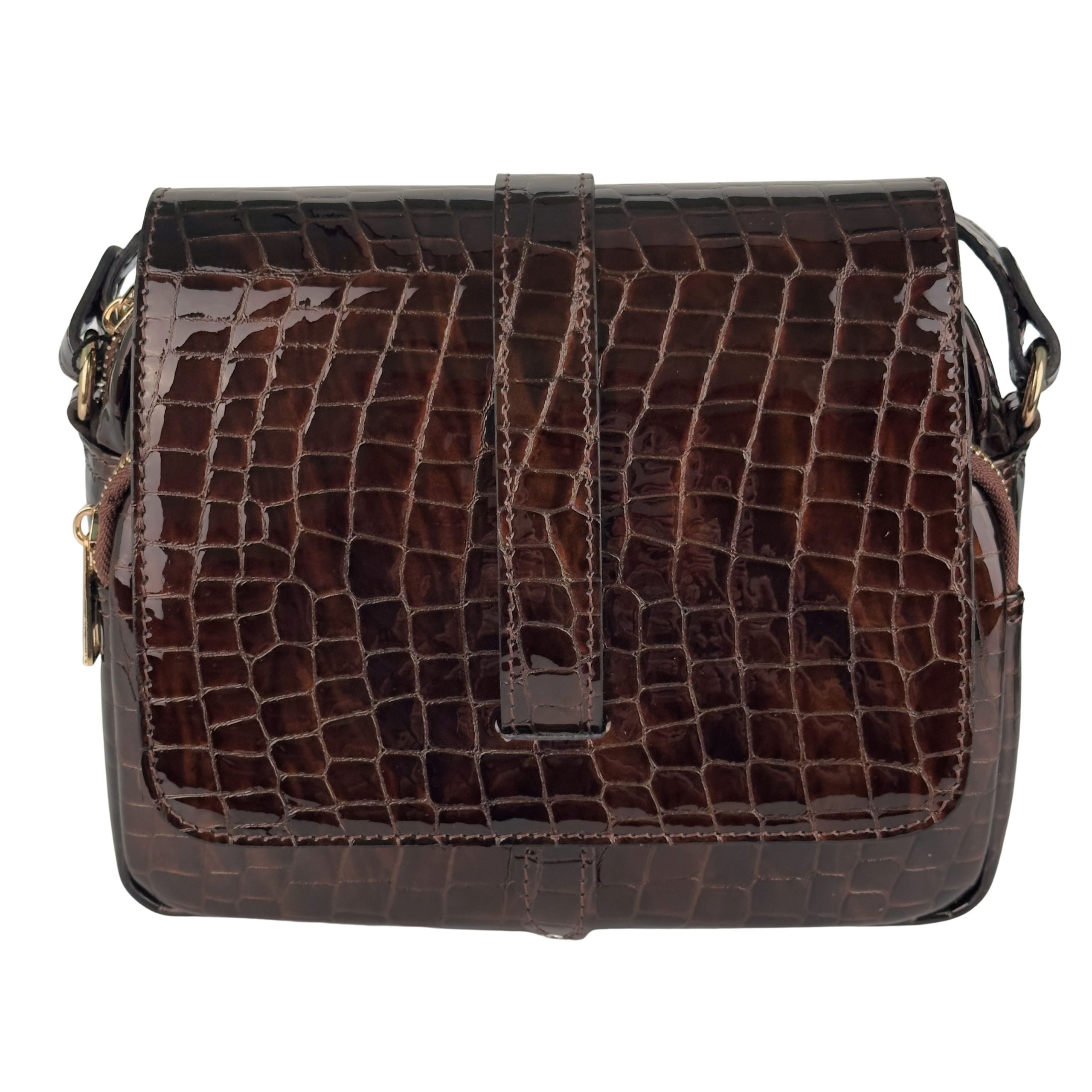 Dodaj odrobinę luksusu do swojej codziennej stylizacji. Ta wyjątkowa torebka wykonana z wysokiej jakości skóry naturalnej to propozycja dla kobiet, które kochają klasykę w nowoczesnym wydaniu. Efektowne tłoczenie imitujące skórę krokodyla z subtelnym połyskiem w głębokim odcieniu brązu sprawia, że model ten prezentuje się niezwykle prestiżowo.